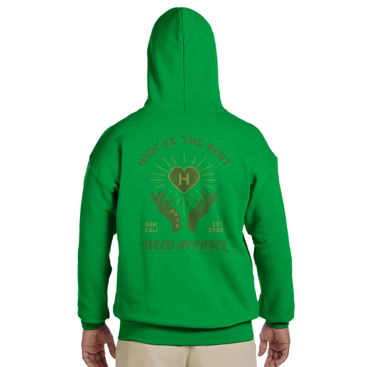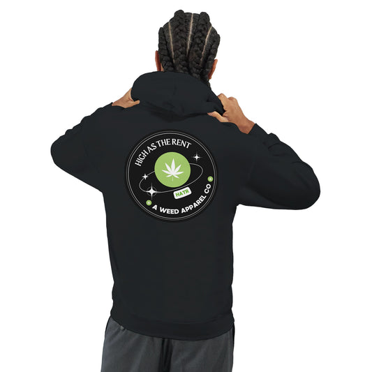 High as the Rent Cannabis Hoodie – Heavy Blend, California Inspired, Double-Lined Hood